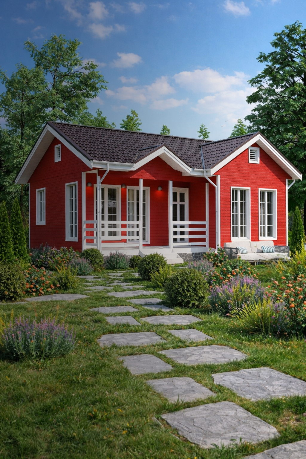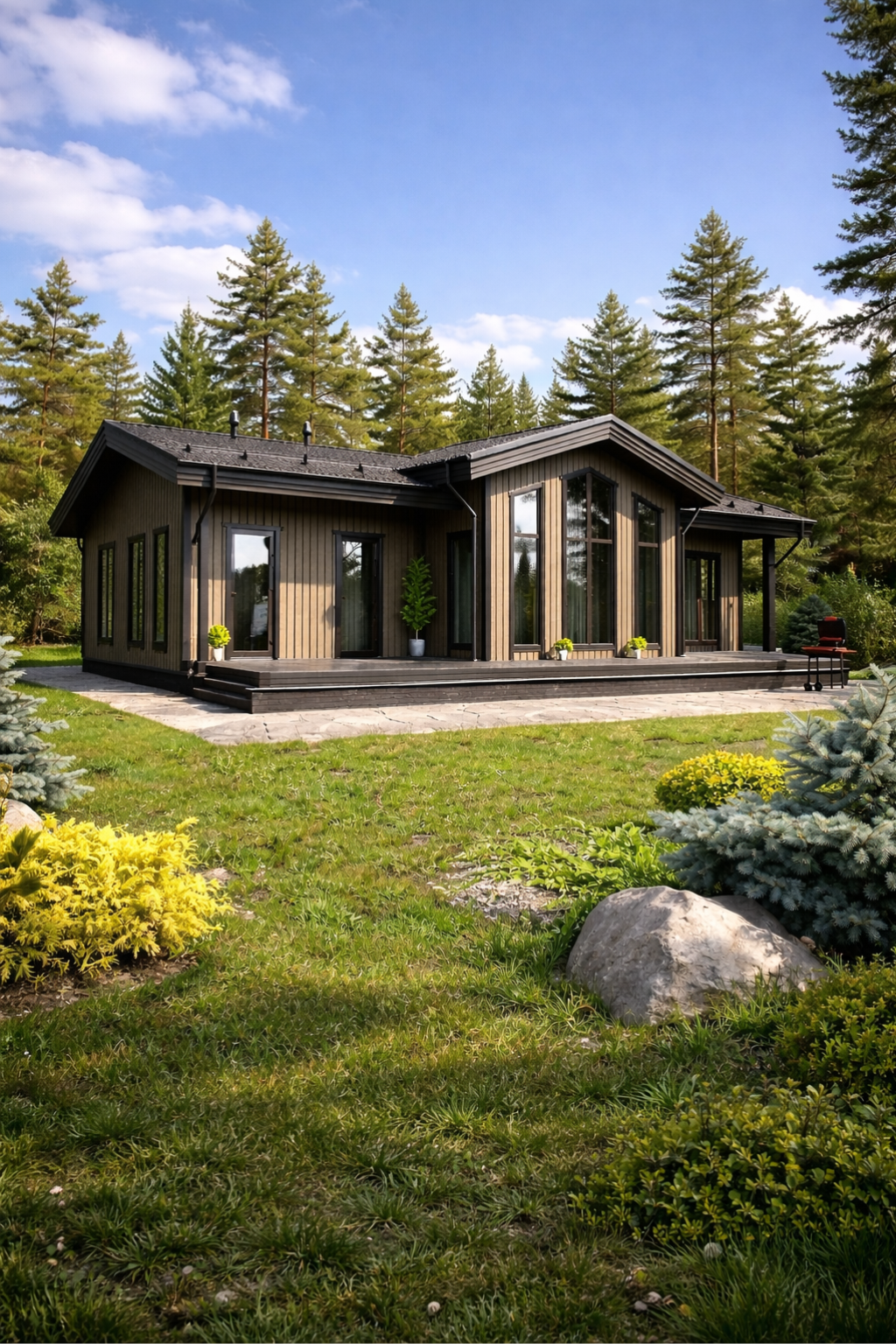 Строят одно, двухэтажные дома разнообразной конфигурации. Благодаря удобной технологии строительства каркасных домов, легкости перекрытий, пространство для реализации сложных архитектурных решений становится максимально обширным.
