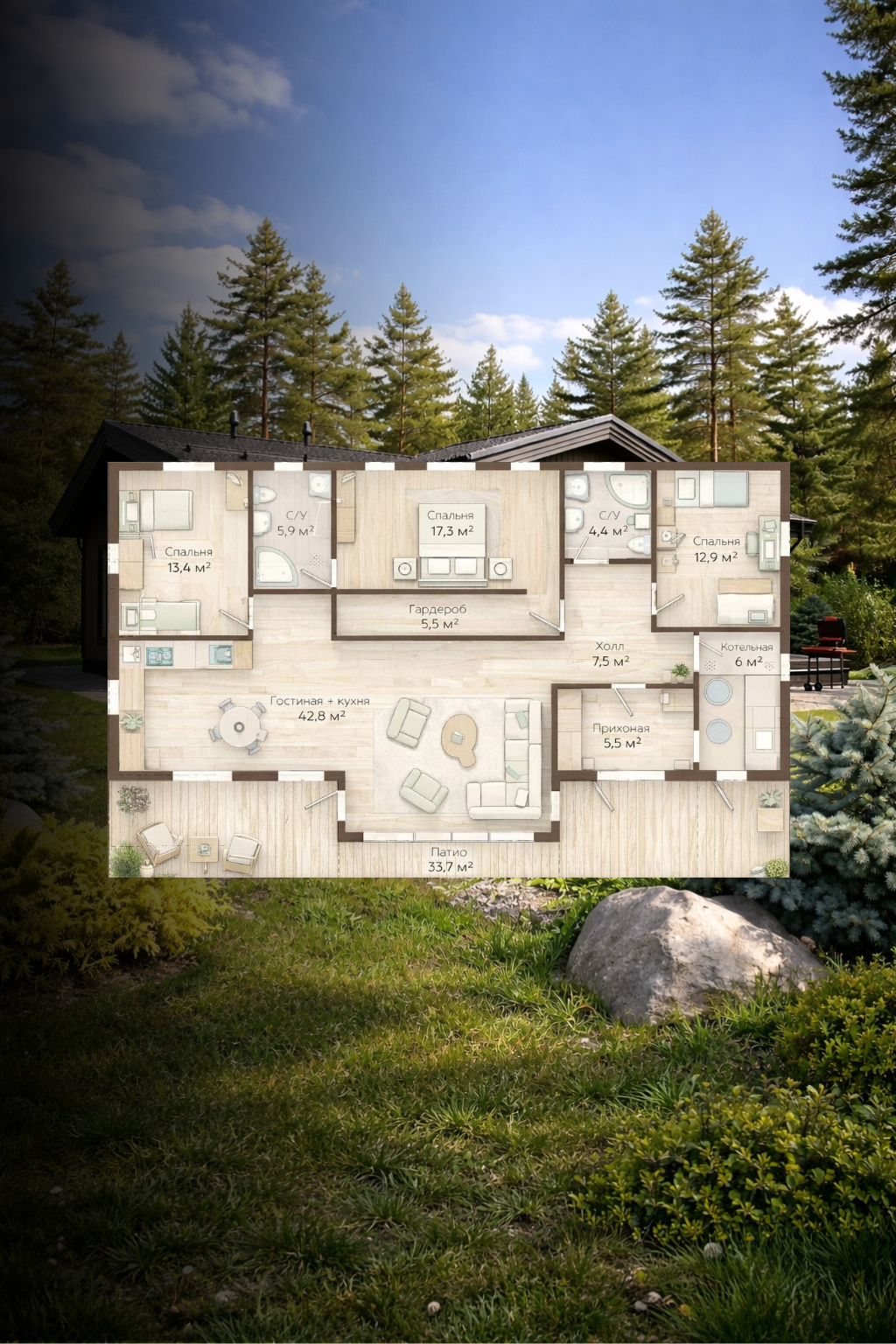Мы применяем материалы с низким классом эмиссии: гипсокартон без формальдегида, водно-дисперсионные краски, древесину камерной сушки. Утеплитель — каменная вата. Все материалы имеют необходимые сертификацию по экологическим стандартам. Дом готов к заселению сразу после сдачи — запаха строительных смесей нет.